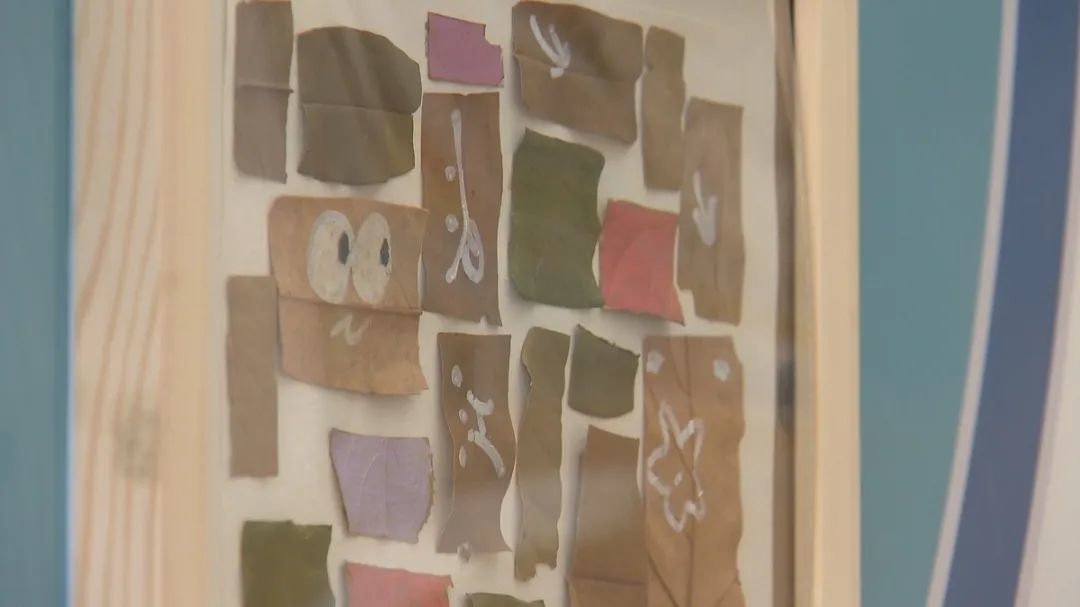 我们利用周边的一些材料,打造了这个“孩子的36件小事”。比如说树叶,大家随处可以看见,捡回来后可以让小朋友们研究树叶的形态、掉下来的原因,以及树叶落下后能做什么样的造型等等。