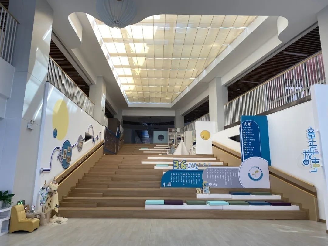 幼儿园在设计之初也充分利用园内空间,由灯带勾勒而成的光影游戏区,彰显出科技与艺术的美感,激发了孩子们探索光影秘密和浩瀚星球群的兴趣。