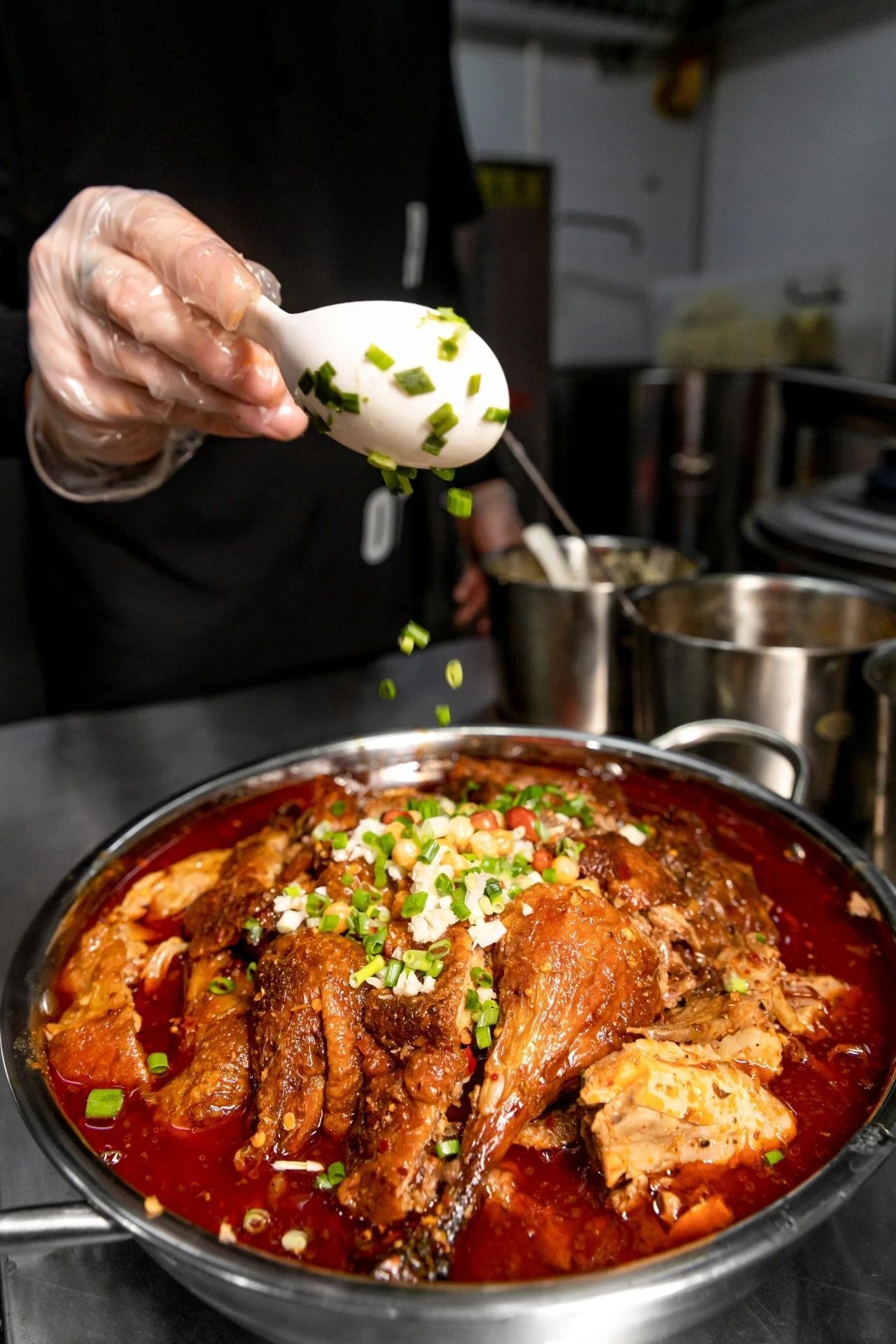 李叙青的冒菜汤底,集香、辣、爽、麻于一体,除烤鸭外,消费者也可下单毛肚、牛肉、各种素菜等进行搭配,自行diy想要的“定制”美食。同时,店内供应成都小吃、甜品等。据悉,近期品牌对传统干拌锅底做了升级,加入现打的土豆泥,口感多了一层绵软,值得一试。