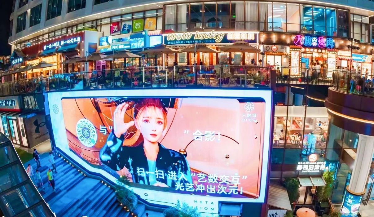 每日19:00-21:00,位于商场中庭广场的33k投影矩阵幕布会自动降下,配合123平方米裸眼3d巨屏,市民可与光艺碰面和互动。通过特定二维码进入互动游戏“与光合影”,市民还能与光艺共拍大头贴。融合数字前沿科技与硬核艺术创意的交互体验,为市民带来更多趣味和活力。