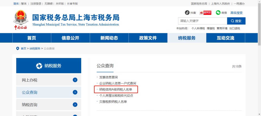 在公共查询中点击【纳税信用a级纳税人名单】。