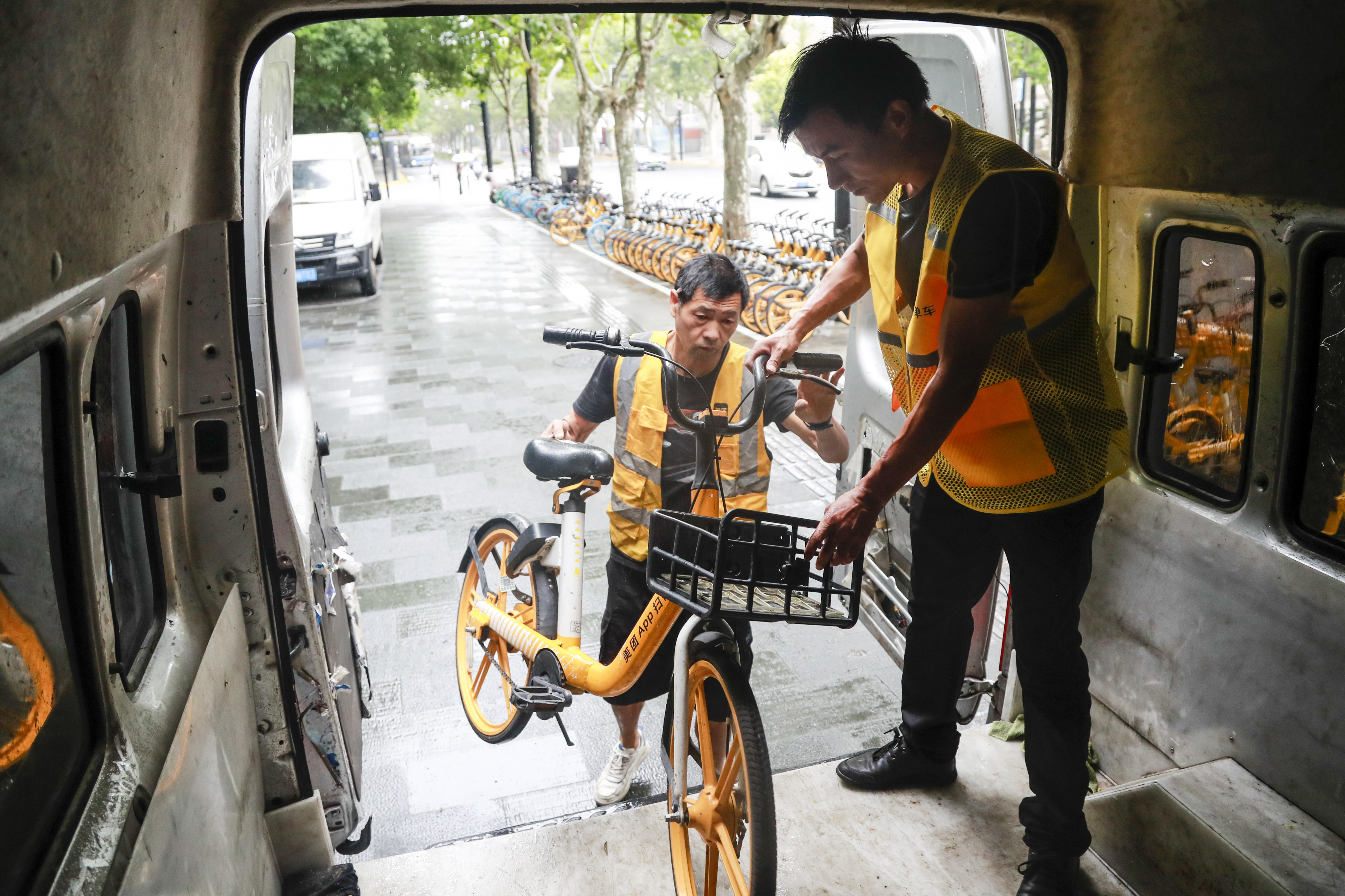 9月起,美团骑行正式在上海推出最新款“小黄框”单车,预计在全市置换约7万辆旧款单车。近期,首批3.5万辆最新款小黄车将陆续亮相上海城市街头。而黄浦区作为上海核心区域,是此次新旧单车置换的第一个区,9月21日在新天地地铁站1号口,记者看到,美团单车运维人员,已经开始紧锣密鼓地投放新单车以及回收旧单车。