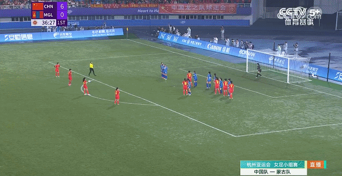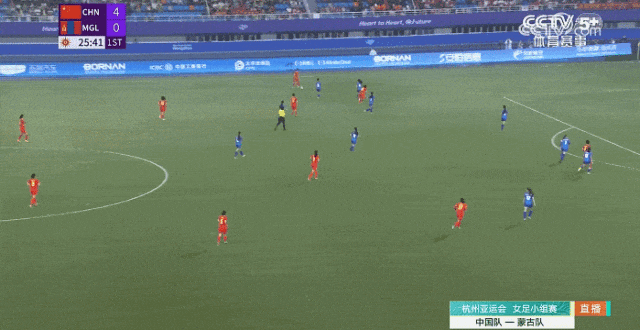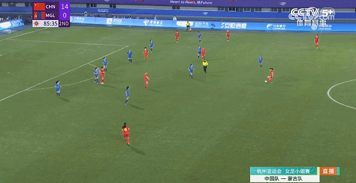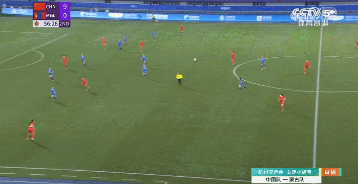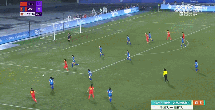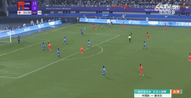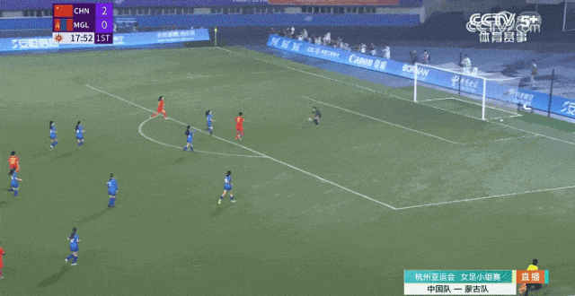 补时阶段第2分钟,张馨的打门弹到地上正好吊过门将,中国女足16比0蒙古女足!