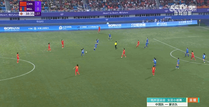 第37分钟,王霜定位球直接破门,中国女足7比0领先!