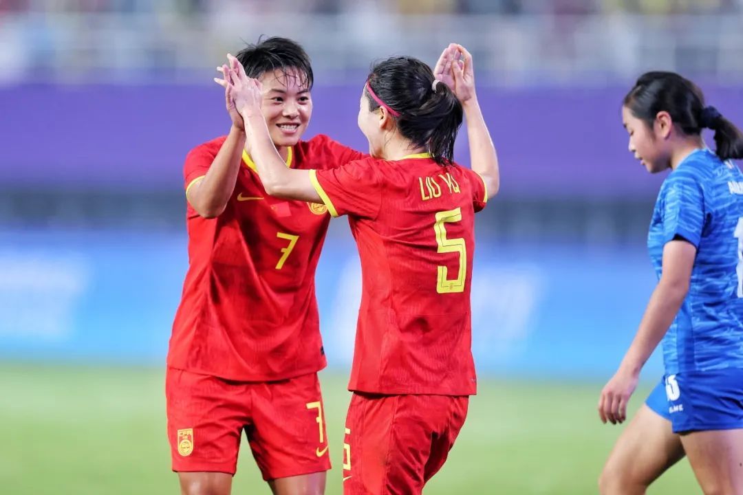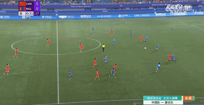 今晚,亚运会女足小组赛a组第一轮打响,中国女足对阵蒙古女足。王霜上演五子登科,王珊珊、闫锦锦(上海)、乌日古木拉、张馨(上海)双响,刘艳秋、杨莉娜(上海)、欧懿垚各入一球,最终中国女足16比0战胜蒙古女足。