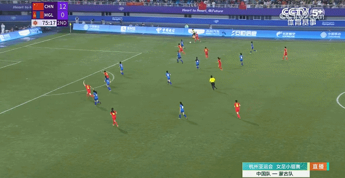 第73分钟,古雅沙传中,欧懿垚头球破门,中国女足12比0!