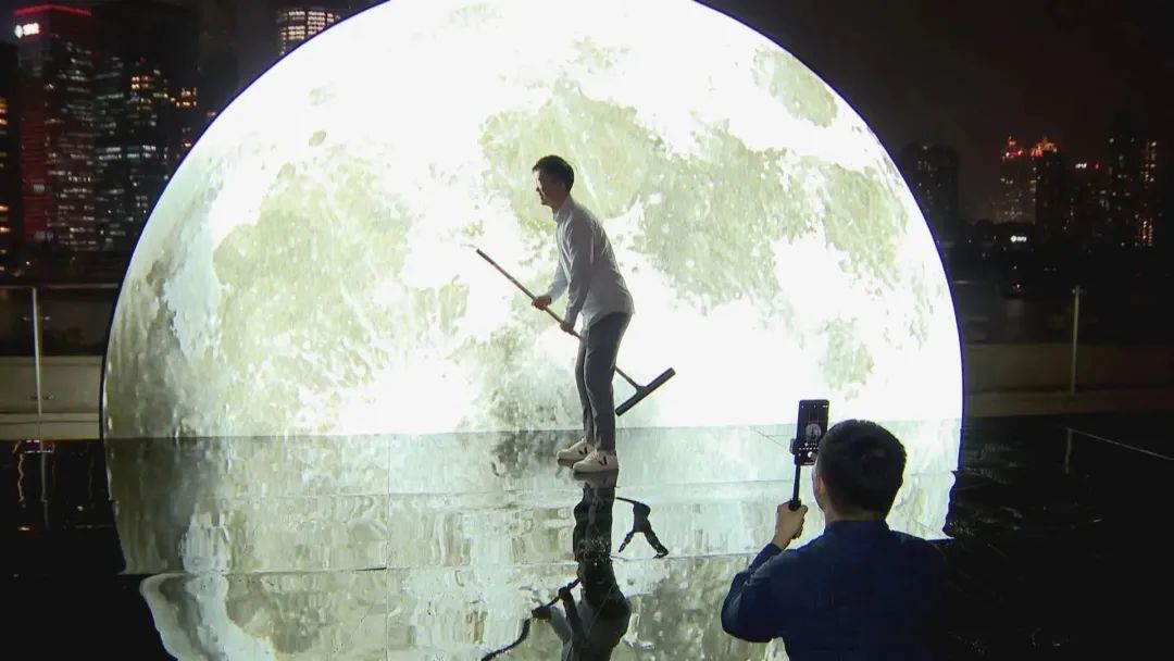 在月亮前拗造型只能属于基础操作,更多人想到借助道具,加入无限创意。“美少女战士”“飞天女巫”,每一个独特的创意出现,都会引得现场一片欢呼。