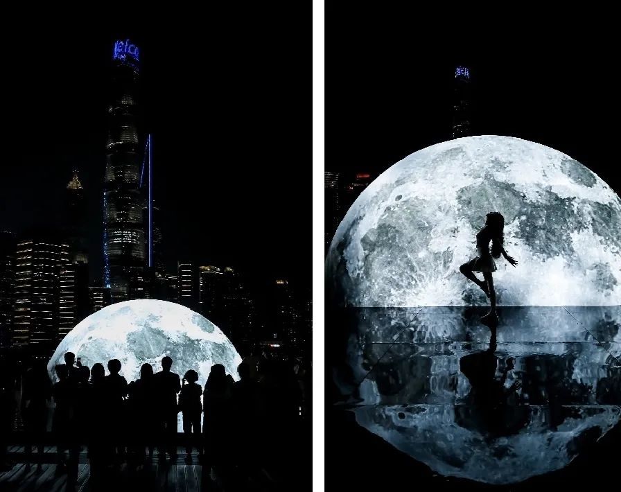 继巨型玫瑰、外滩猫街、告白气球等人气ip火爆出圈后,bfc又一次在心动露台呈现双节限定浪漫——“超级月亮”,该露台免费对社会公众开放,吸引许多市民游客前来打卡拍照。