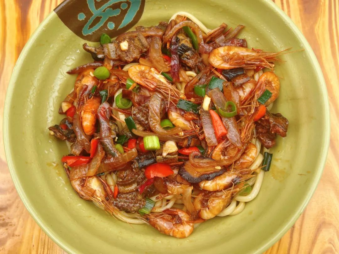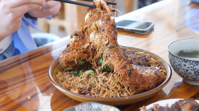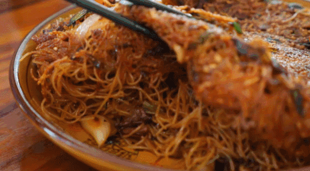 这家店的锅巴炒米面,小布愿称安吉炒米面界的天花板。比脸还大的锅巴米面,恰到好处的焦香、酥脆,一口一口都是幸福的味道。