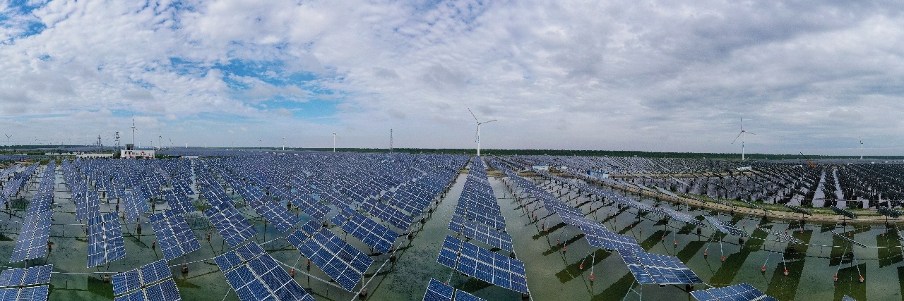 从一块块光伏板到一个个光伏电站,亿晶光电构建“光伏+”产业生态。在金坛天荒湖三千亩水面上,130个光伏发电系统分区排列,是亿晶“渔光一体”光伏发电项目,所用光伏组件由亿晶光电自主生产,电站年发电量近2亿度。