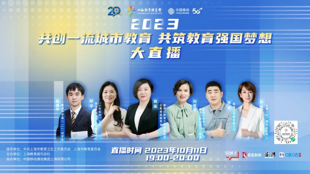 10月11日晚,奉贤区教育工作党委委员、区教育局副局长周英,奉贤区教院附小·奉浦联合小学书记、校长何哲慧,奉贤区青少年实践教育中心(少年军校)主任邢华 ,奉贤区家委会副主任陈军,奉贤中学高二学生熊昊宇做客上海教育大直播,共同分享奉贤教育在家校社协同育人方面的探索。