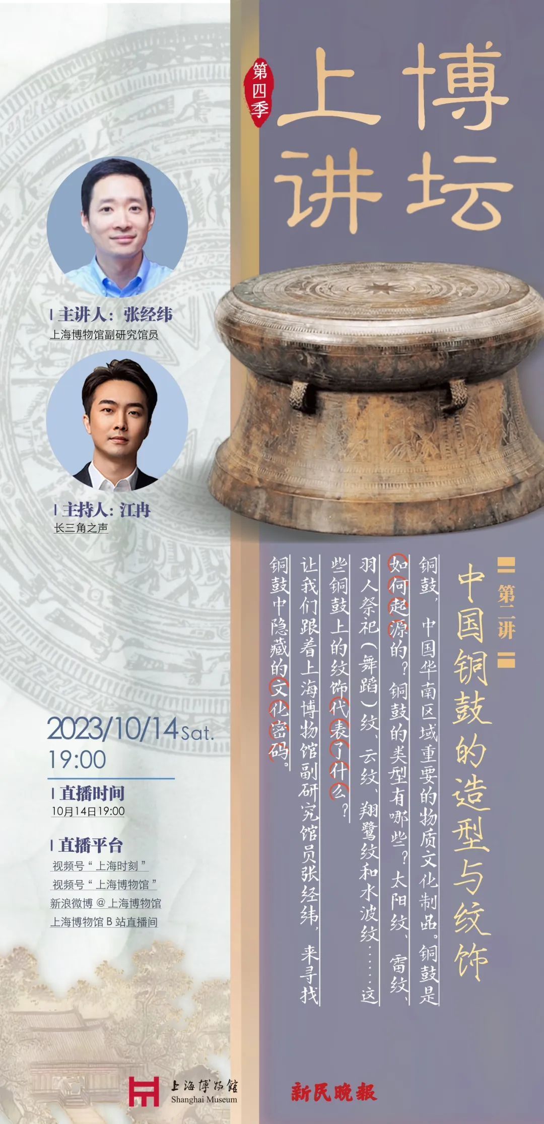 上海博物馆与新民晚报联合打造的公益文化品牌——“上博讲坛”,是一个汇聚上博英才、文博大家的文化传播平台。