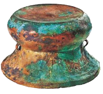 (二) 铜鼓类型:可以按照滥觞期(春秋战国)、成熟期(战国至东汉)、发展期(西汉至唐代)和式微期(唐代至现代)等四个阶段,分为万家坝型、石寨山型、东山早期型、北流型、灵山型、冷水冲型、东山晚期型、遵义型、麻江型、西盟型等10个类型。