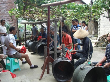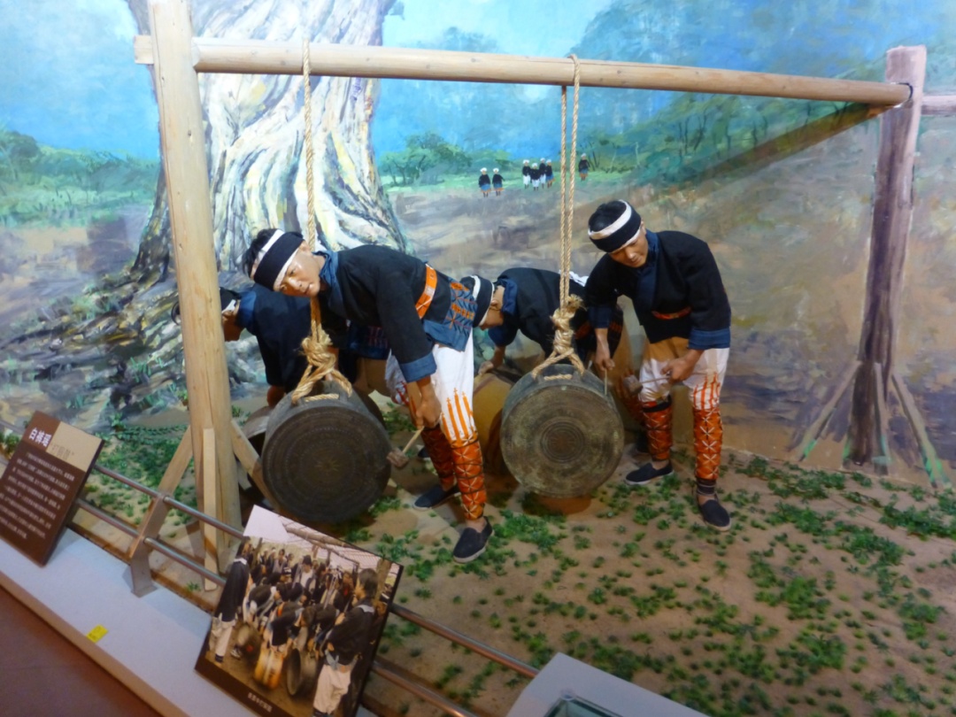 (一)起源:首先创造铜鼓的是“生活在云贵高原上的濮人,嗣后才传到百越地区”,使用铜鼓的当代民族则包括“壮、布依、侗、水、苗、瑶、彝等族”。
