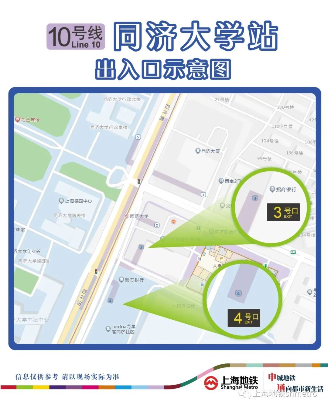 近期,10号线同济大学站3、4号出入口已完成整修工作,具备启用条件。根据计划,10号线同济大学站3、4号出入口将于10月18日起正式启用。