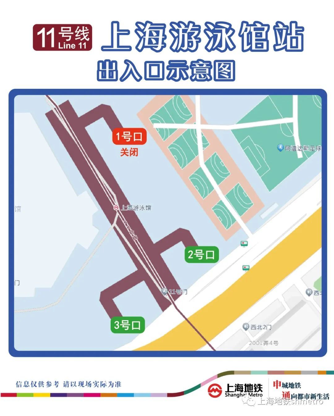 同时,11月12日起,11号线上海游泳馆站1号口关闭,散场时段,乘客可通过2、3号口通行。