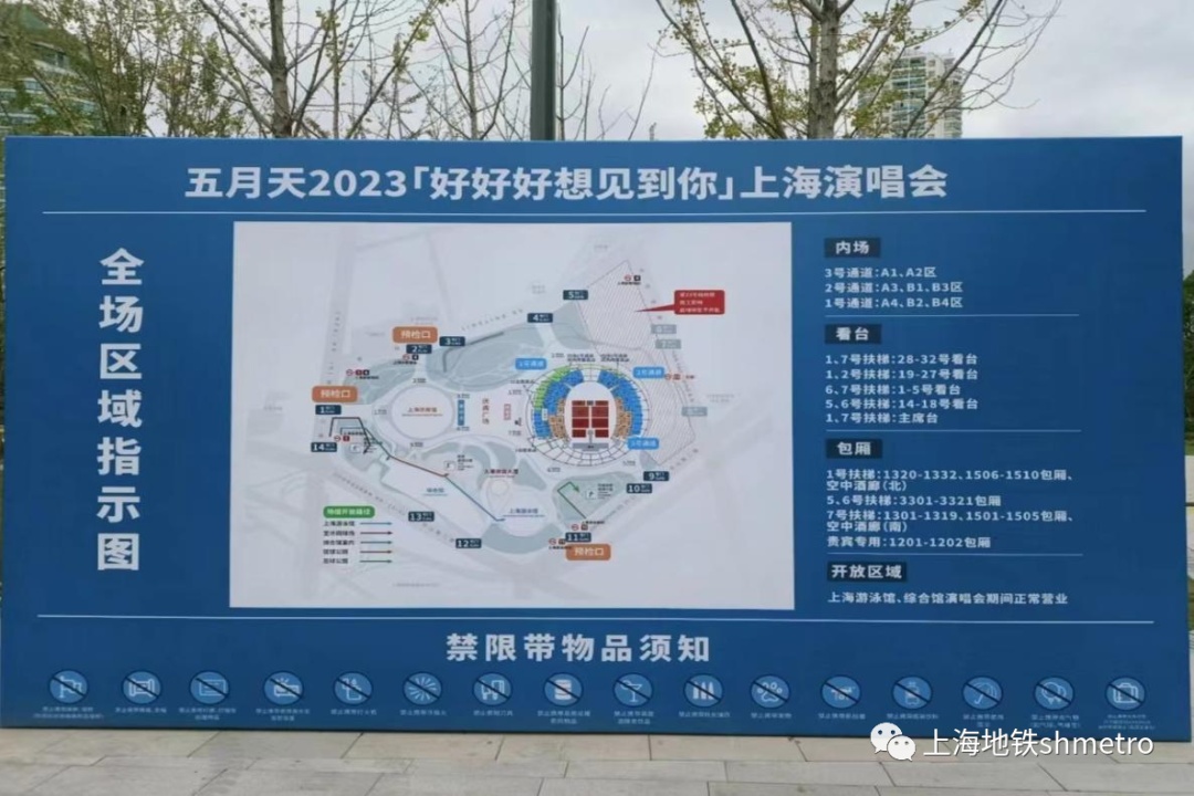 在此小编提醒大家:演唱会开始前,上海体育场和上海体育馆站各出入口均可正常进出。另根据上月周杰伦演唱会的现场经验,场馆2号门进场人流较多,可能会出现排队情况,建议乘坐地铁至1、4号线上海体育馆站出站的乘客可以从场馆1号门验票入场。