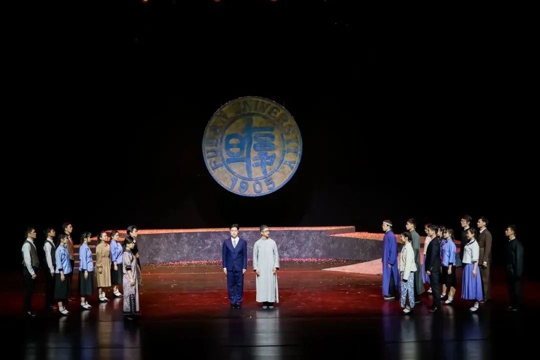 舞台上25位演员穿梭其间,在“建校”“办学”“坚守”等不同的历史时期发挥光彩,饰演了40余个角色。其中,有刚入校的2023级本科新生,有教职工,有拥有大师剧演出经历的“老演员”,有留学生,还有惊喜出演的二附校的小学生们。虽然不少成员都是第一次接触舞台表演,但大家在一轮轮的排演过程中不断彼此学习、相互提高,最终使演出圆满呈现。