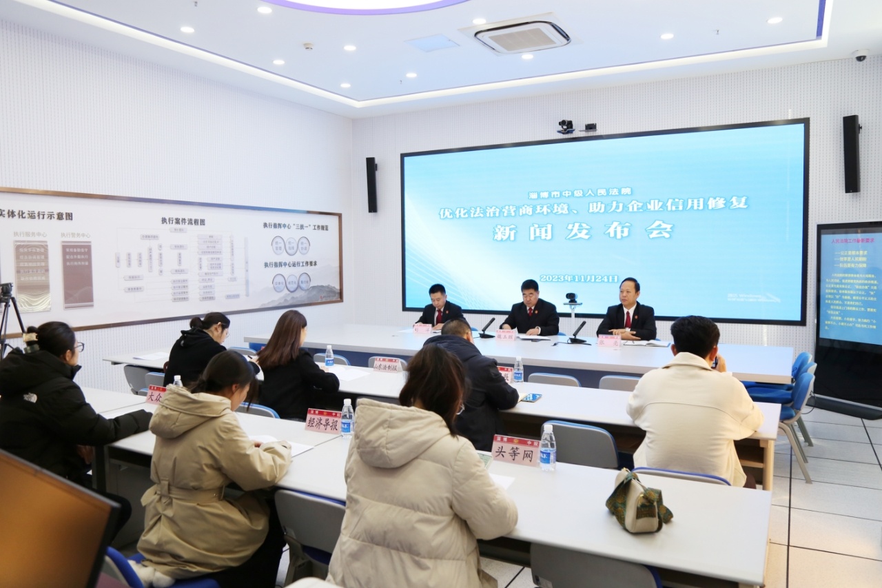 11月24日,淄博市中级人民法院召开新闻发布会,通报今年以来全市法院开展“优化法治营商环境,助力企业信用修复”专项行动的情况,并发布助力企业信用修复十大典型案例。