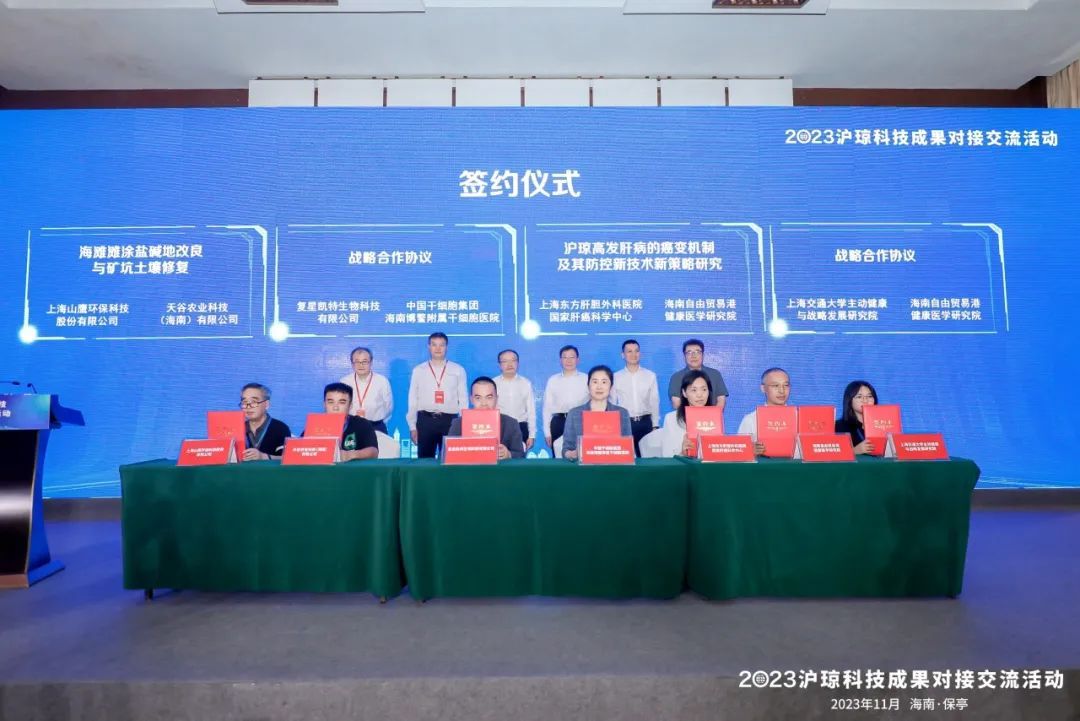 本次成果交流对接的七个现场签约的合作项目中,有两项合作由王红阳院士团队和贾伟平院士团队分别与海南自由贸易港健康医学研究院开展合作研究。复星凯特也将与中国干细胞集团海南博鳌附属干细胞医院签署战略合作协议。