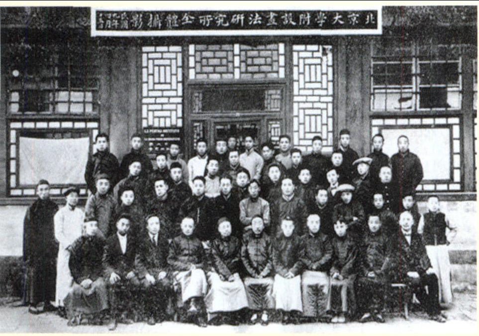1918 年,蔡元培(四排右四)、徐悲鸿(五排右五)与北京大学画法研究会合影