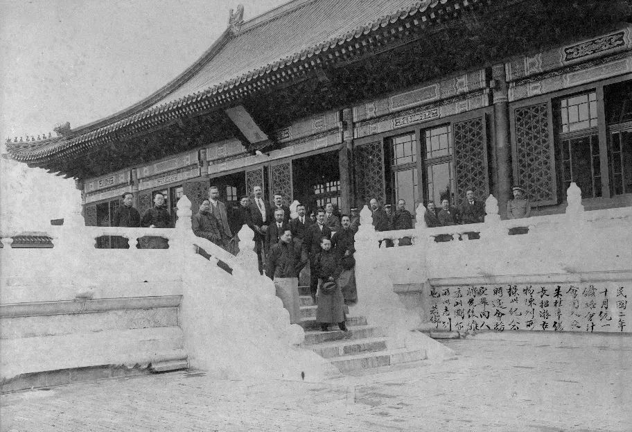 1914年10月1日, 铁路会计会同人参观古物陈列所后在武英殿前合影(前排持帽者为叶恭绰)