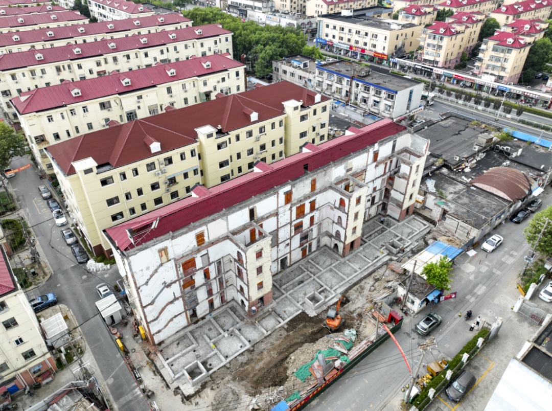 “快了,你看这是我家,他们已经搭建到顶楼了”。这几天,家住龙吴路5530弄吴泾小区的居民张雅琴别提有多高兴了,看到自家的房子改造进度不断加快,张雅琴仿佛已经能预见到自己住进新家的模样了。