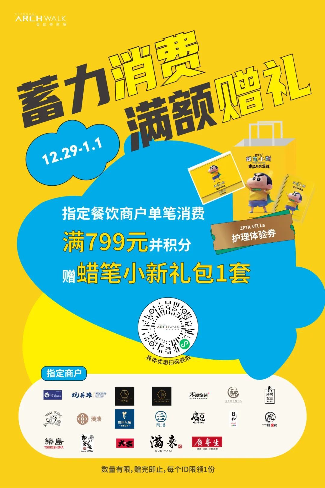 值得一提的是,即日起至2024年1月21日,金虹桥商场益二郎餐厅将化身蜡笔小新联名主题餐厅,为市民提供“超能力新次元”儿童套餐、“野原广志的工作拉面”套餐等特色美食。