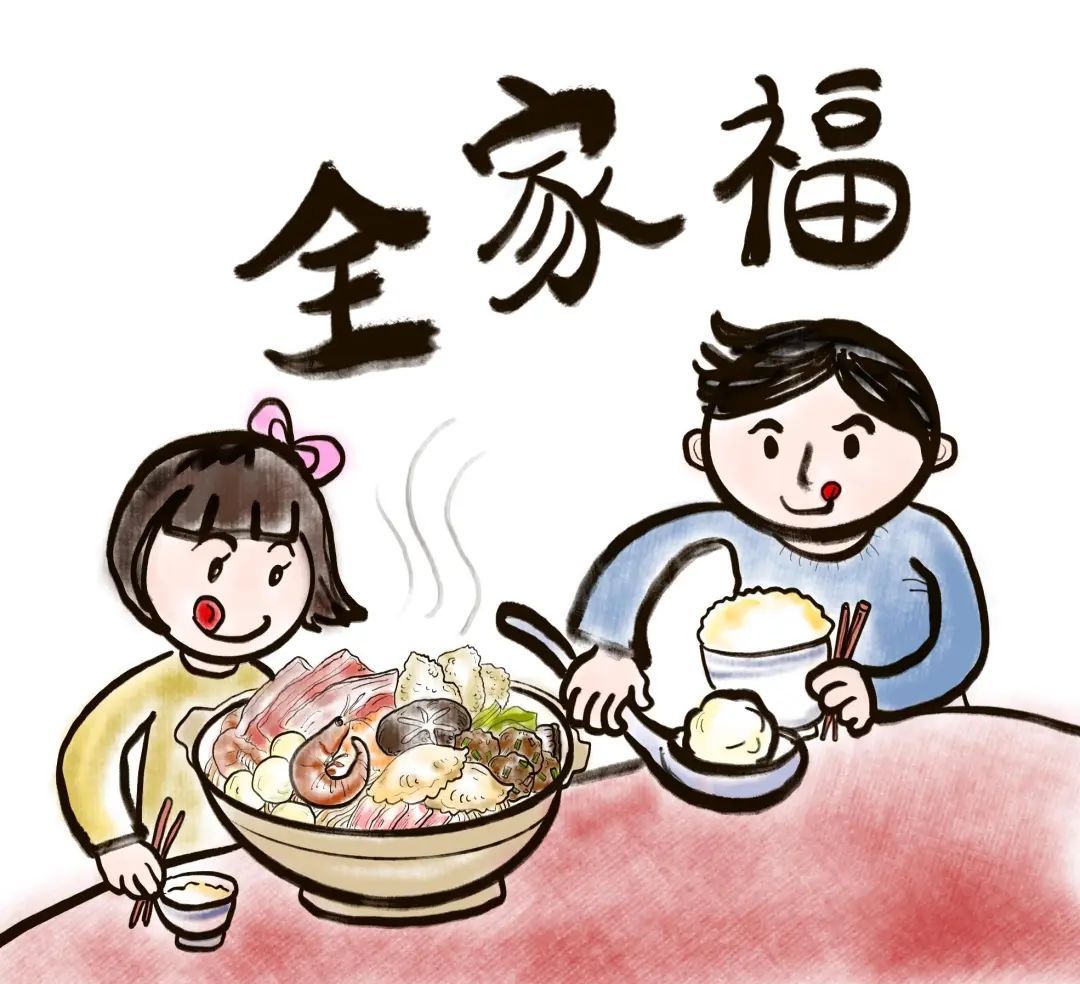 全家福,也是上海人天冷爱吃的砂锅汤。大虾、肉皮、咸肉、蛋饺、香菇、粉丝等食材,热热闹闹一锅。适合全家人坐在桌前大快朵颐,也是亲友请客的必点菜品。
