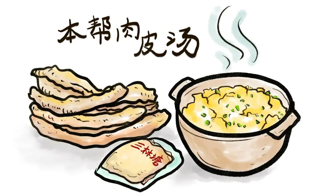 若要简单一点,本帮肉皮汤也是一个不错的选择。三林塘的肉皮可是鼎鼎有名的。和海绵一样的嫩黄色肉皮,放点葱或者别的食材。一锅简单的肉汤就是这季节里至纯的美味了。