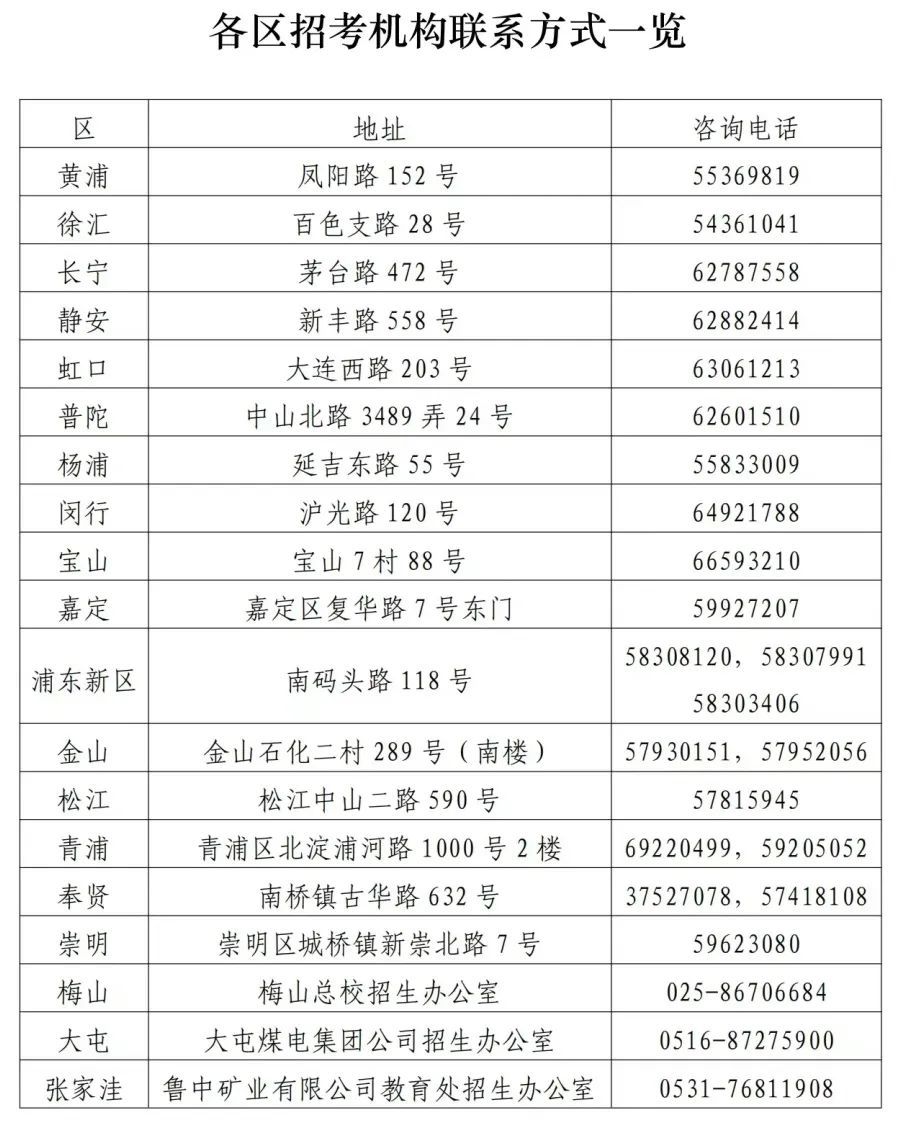 5.请考生密切关注上海市教育考试院“上海招考热线”网站和“上海国子监发布”微信公众号、就读学校和区招考机构(各区招考机构联系方式下方)发布的相关信息。