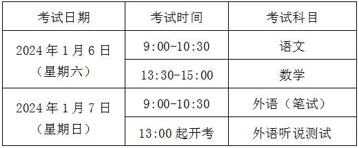 2024年1月上海市普通高中学业水平合格性考试(语文、数学、外语科目)将于1月6日至7日举行,考试安排如下: