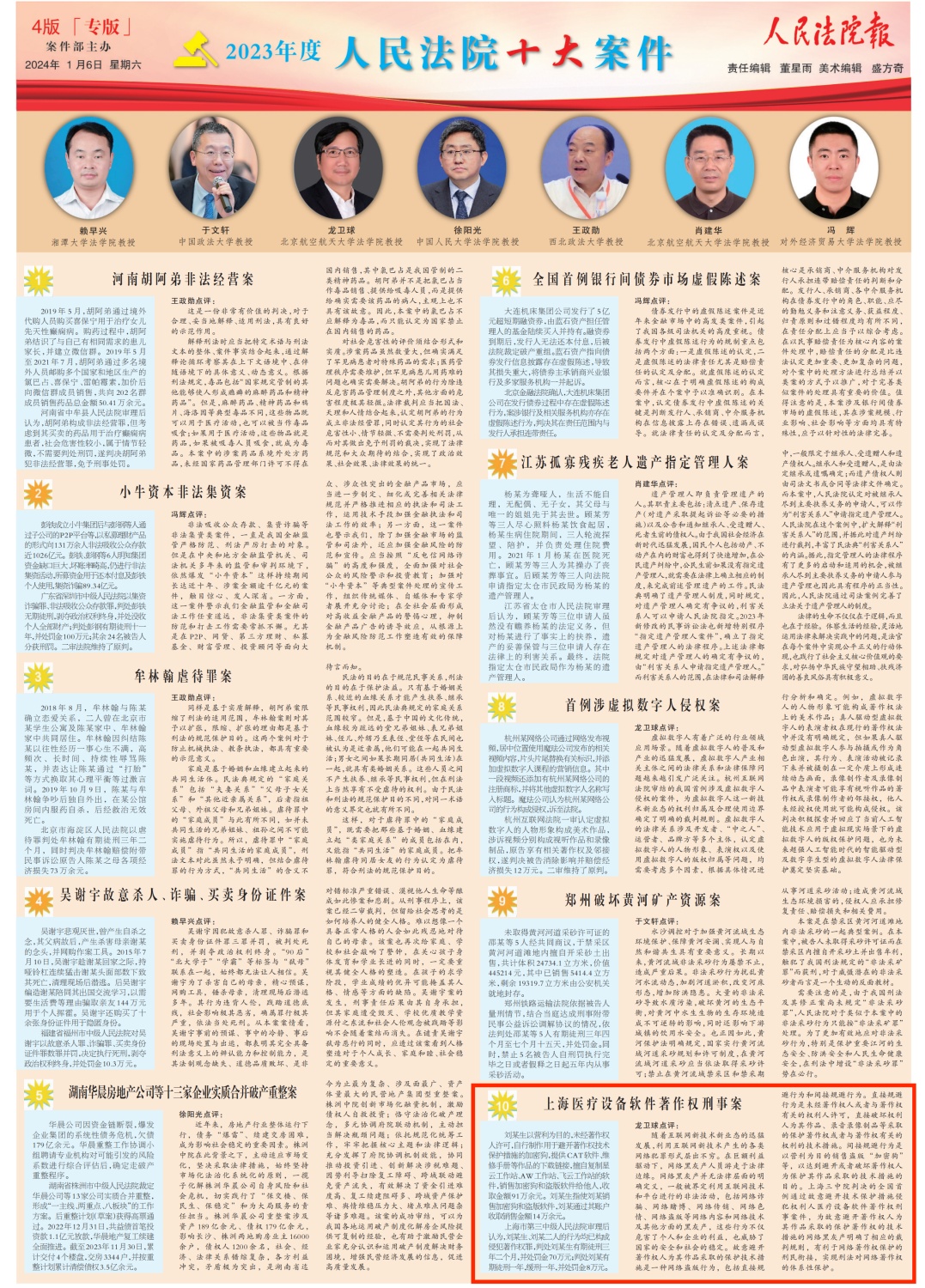 今天(1月6日)人民法院报评选发布2023年度人民法院十大案件。上海法院1案例入选。