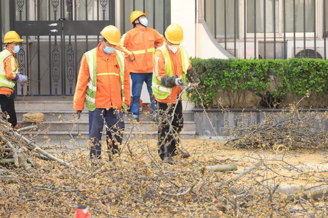 通过冬修,控制树木高度,降低树木重心,可以平衡树木的根冠比,提高树冠通透性,配合夏季剥芽工作,可有效减弱台风侵袭时树冠的受风阻力,降低树木倒伏风险。