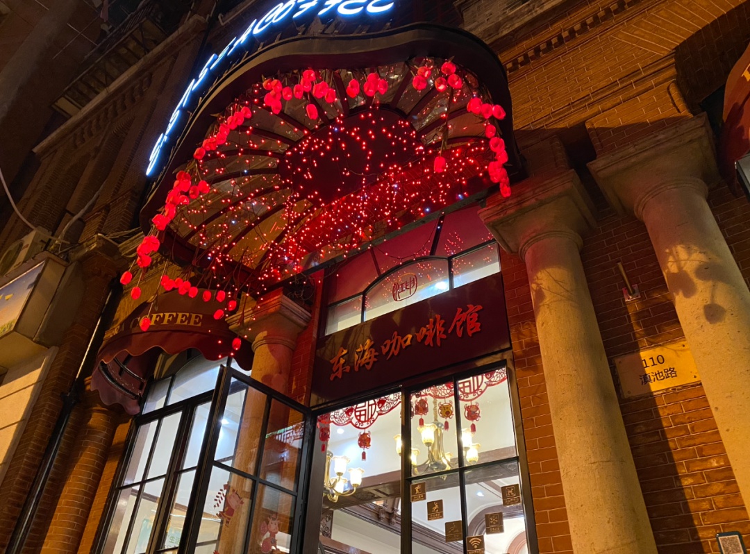 这里提到的东海咖啡馆,是上海的第一家咖啡馆,1934年由一个犹太人创设,最初叫“马尔斯”,开在南京路沙市路口。店里有美式,也有虹吸壶的手工咖啡,在当时算是高档消费,时髦男女谈恋爱,就喜欢去这种洋气地方。如今,东海咖啡馆已经在外滩滇池路110号重新开张,复古的装饰、经典的海派西餐西点,唤醒了无数人的回忆。
