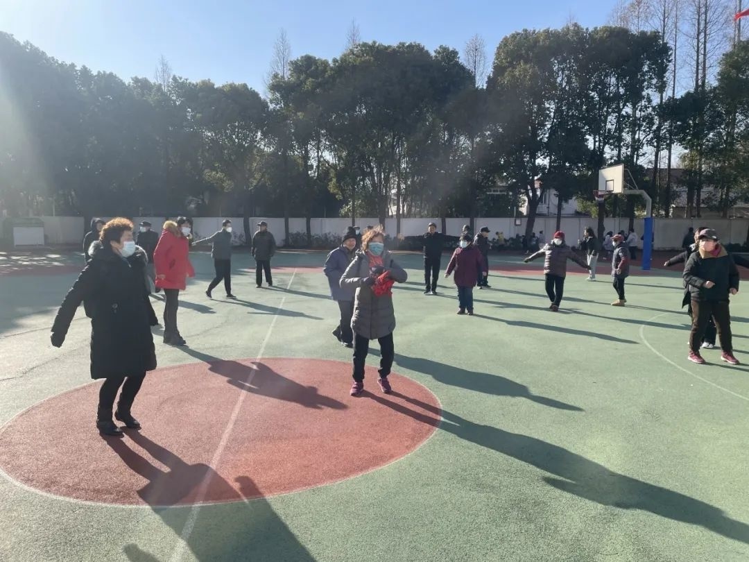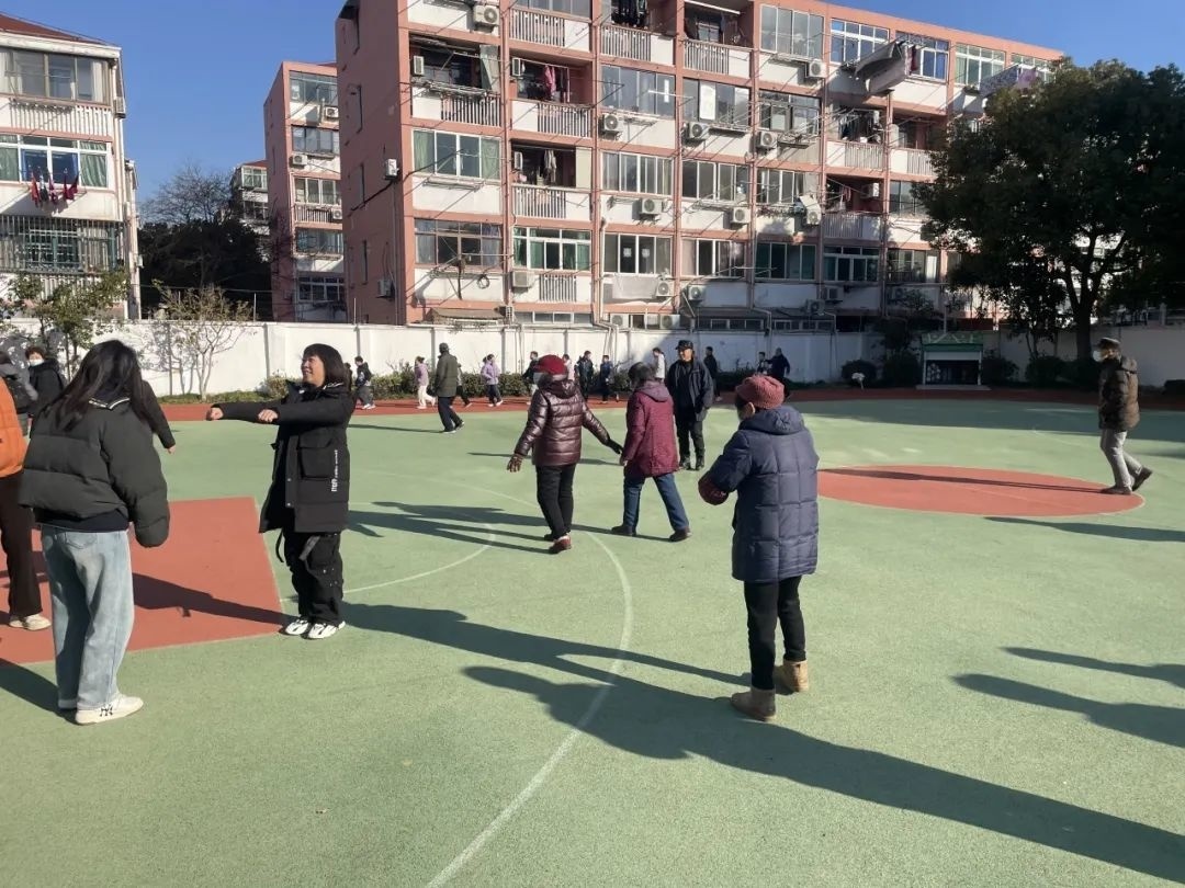 学校所在社区的居民和孩子们纷纷入校开展锻炼,散步、跳绳、广场舞等。校园能成为社区体锻活动的乐园,我们很高兴。