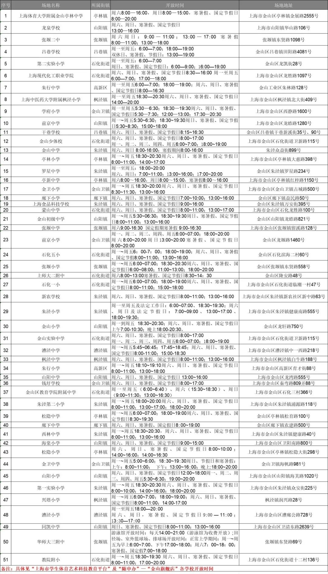 1月20日起,金山区具备开放条件的51所公办学校的163个体育场馆全部实现应开尽开。