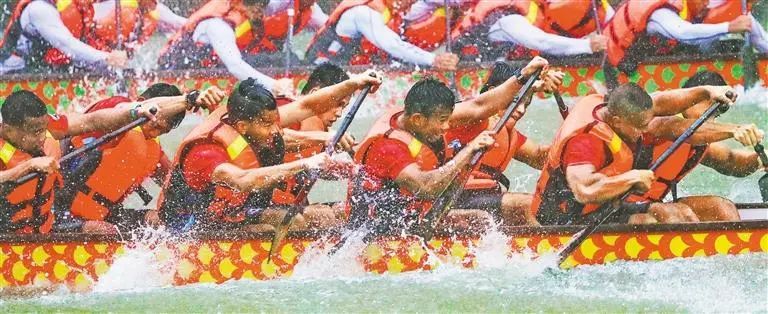 ▲参赛选手在第十九届上海苏州河城市龙舟国际邀请赛上比赛正酣。上海市普陀区以二十一公里苏州河岸线全面贯通为契机,举办龙舟赛,将苏河魅力及海派文化传播各地。李一平摄
