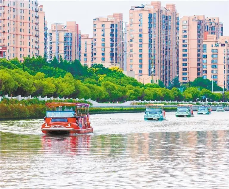 ▲苏州河畔岸绿水清景美。上海市普陀区着力打造友好型城区,为市民提供游玩新空间。孙中钦摄