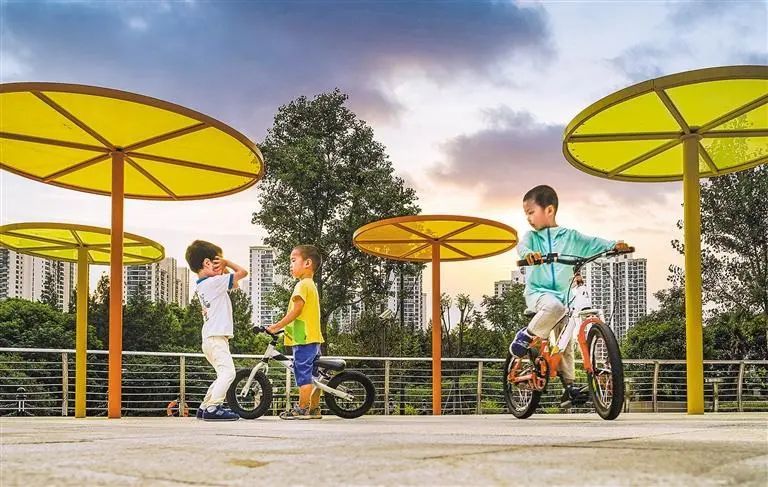 ▲孩子们在苏州河边的船型广场玩耍。随着苏州河综合整治的推进,环境得到大大改善,成为市民休闲的好去处。孙瑞英摄