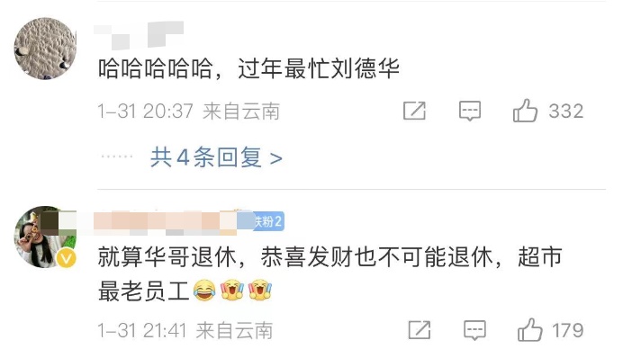 1月31日,刘德华出席新电影宣传活动时,调侃自己即将“解冻”。当被问及在超市“上班”多久了,刘德华愣在原地,原来连自己也忘了。他回忆,当年希望做一首很喜庆的歌,让大家每一年过年都能听到,没想到《恭喜发财》一炮而红。