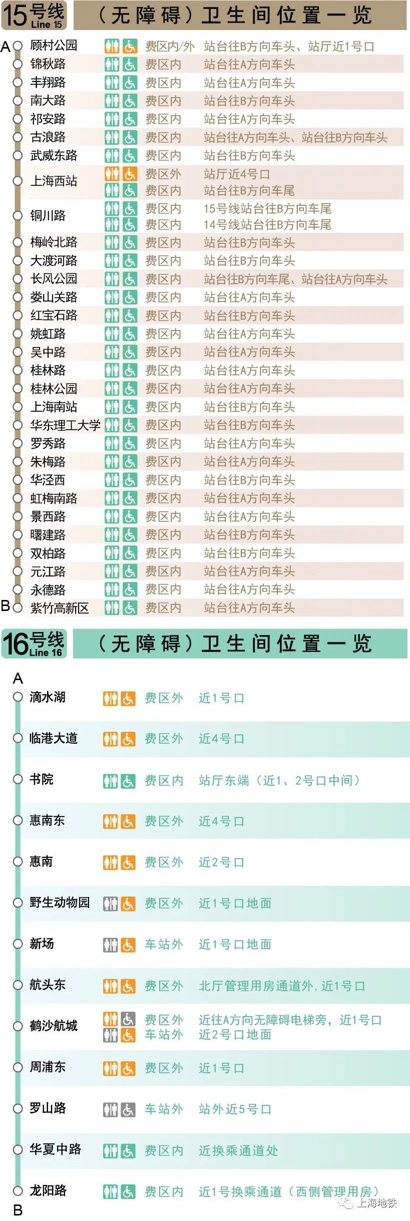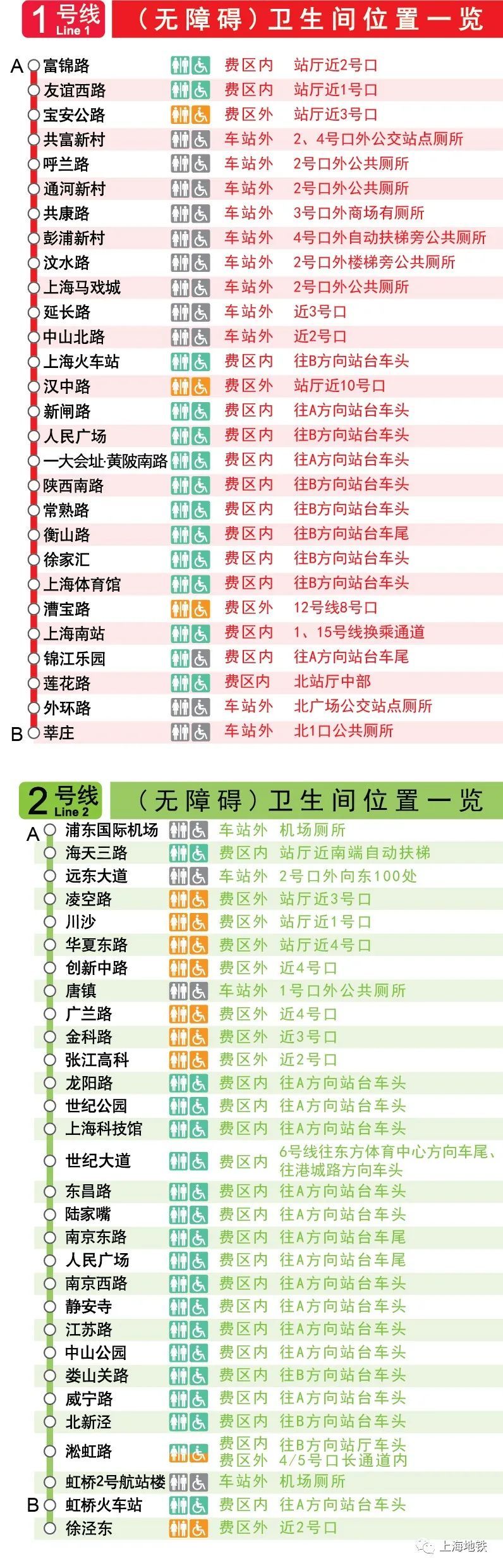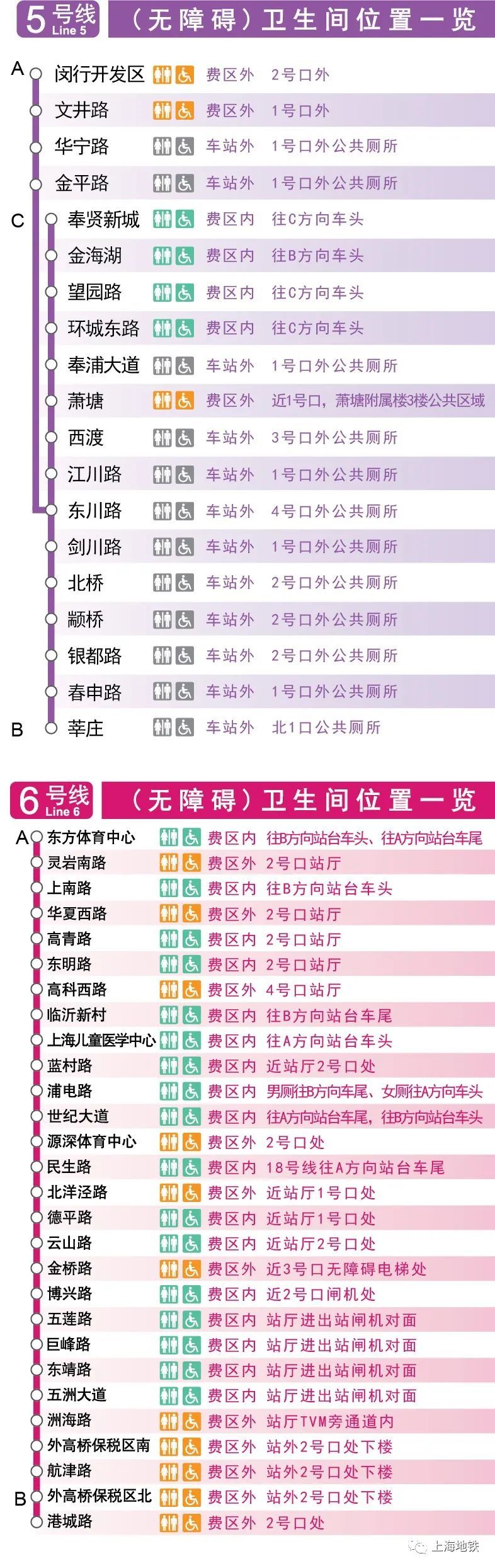 近年来,随着上海地铁网络的快速发展,日均破千万的客流量已成为新常态。地铁在为乘客提供交通服务的同时,也越来越重视乘客查找设施信息的便捷度。为方便广大乘客更快速地找到各站点卫生间,上海地铁整理了一份《2024上海地铁全网各站卫生间一览》。详见↓