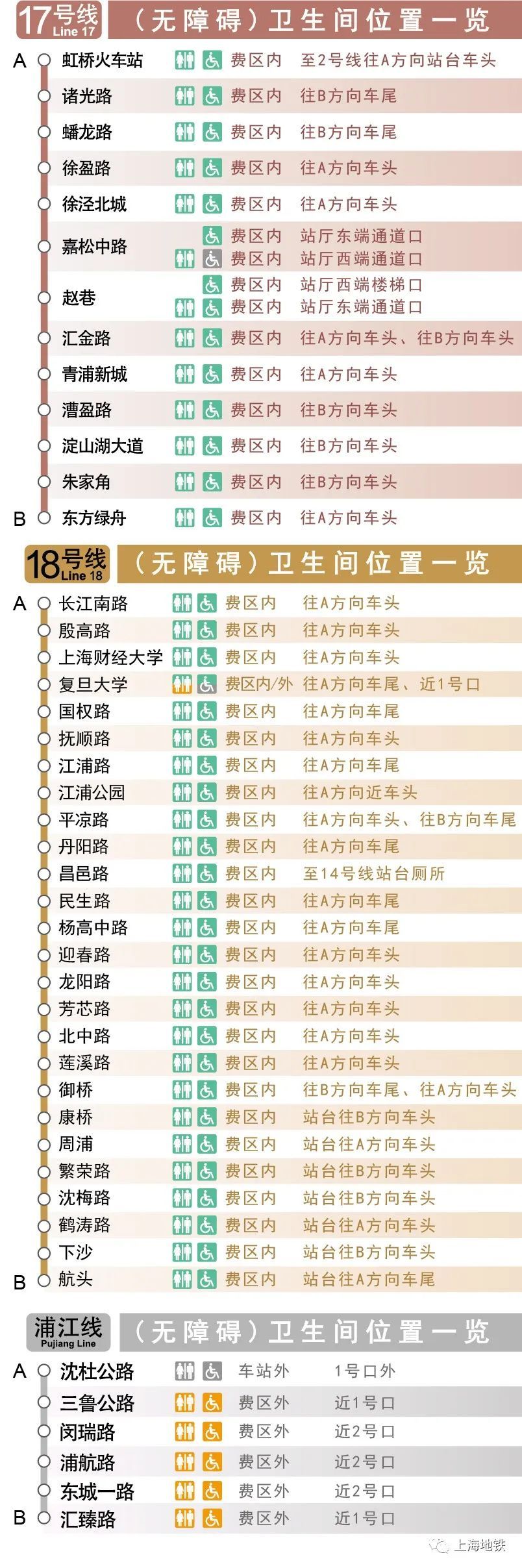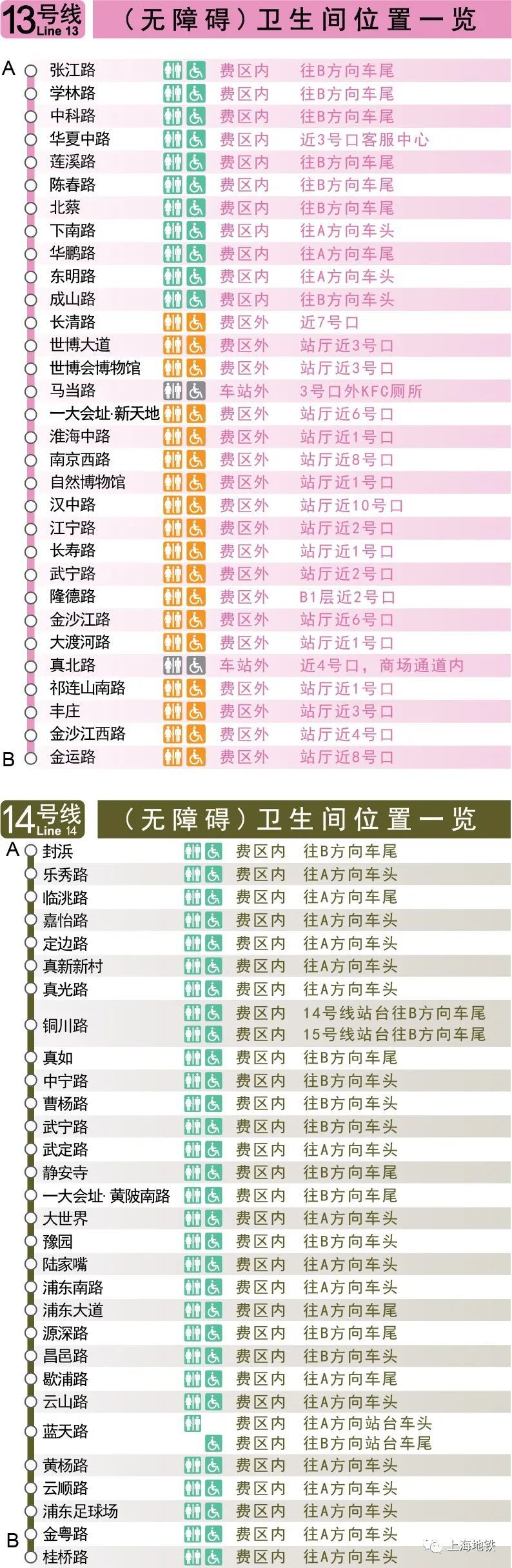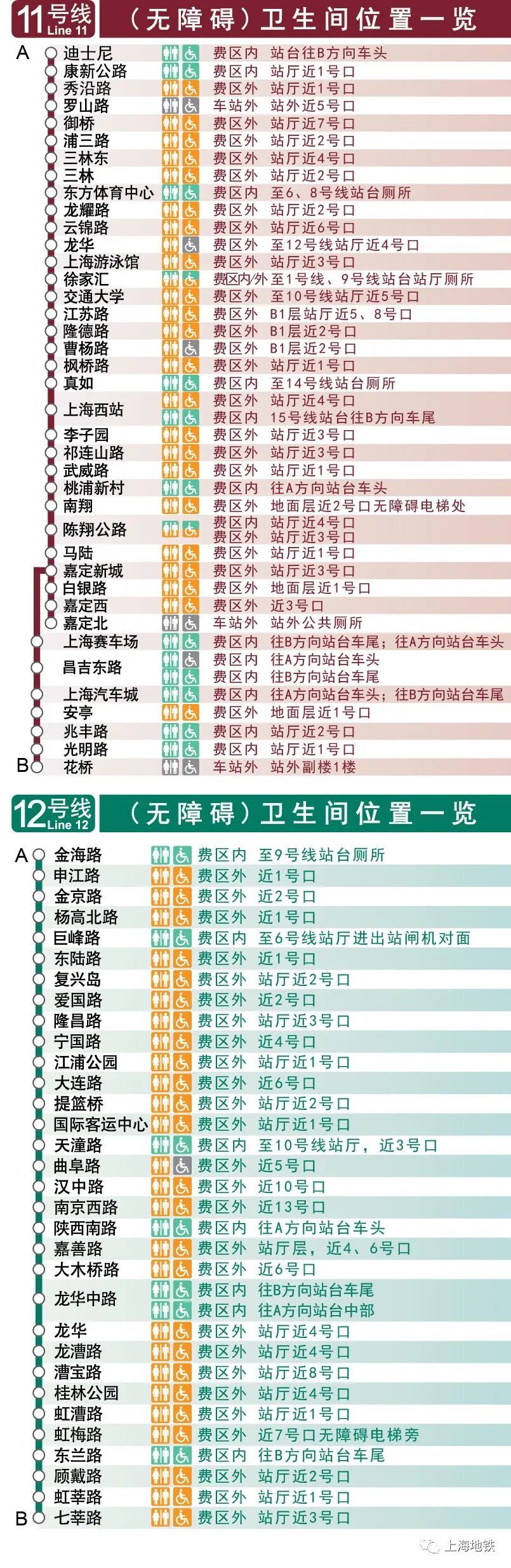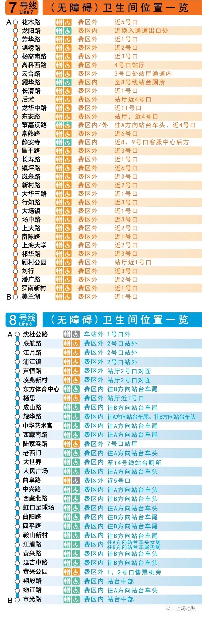 近年来,随着上海地铁网络的快速发展,日均破千万的客流量已成为新常态。地铁在为乘客提供交通服务的同时,也越来越重视乘客查找设施信息的便捷度。为方便广大乘客更快速地找到各站点卫生间,上海地铁整理了一份《2024上海地铁全网各站卫生间一览》。详见↓