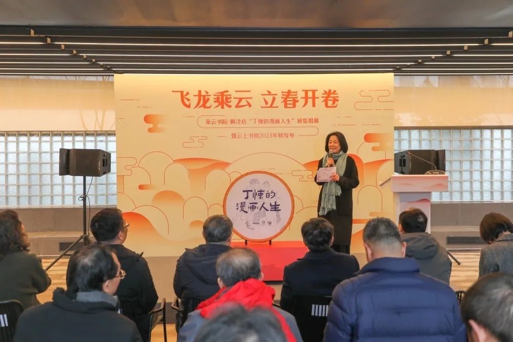 多年来,枫泾在对古镇的保护与更新中孜孜探索,努力让越来越多的古建筑得以“活化”,把江南水乡的历史文脉延续下去。伴随着立春的雨,枫泾古镇的一座百年老宅正焕发新生,转身成为了当下热门的文创书院,用新元素讲述新的百年故事。2月4日下午,朵云书院·枫泾店举行了开业仪式。当天,“丁悚的漫画人生”展览揭幕,云上书榜2023年榜单也在现场发布。