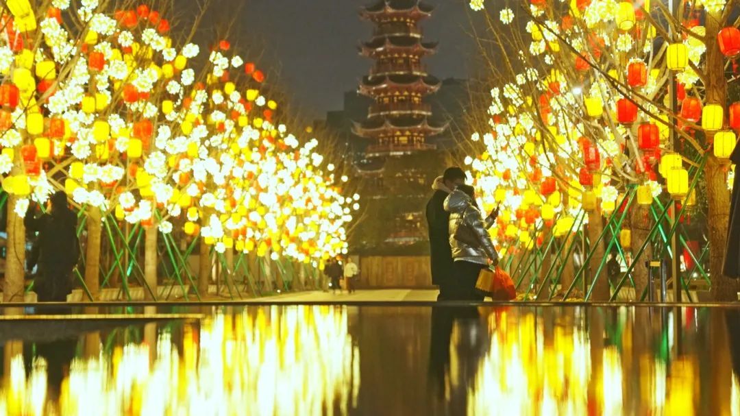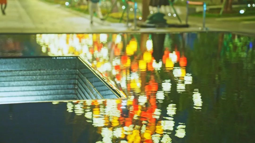 华灯下,龙华塔静默矗立在夜幕中,波光粼粼的池面倒映着花灯,群灯“入水”似一只彩蝶在翩翩飞舞,这充满巧合而又梦幻的一幕吸引了不少市民朋友前来打卡。