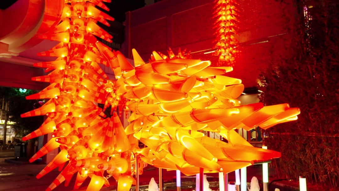龙华广场的花灯每天下午五点开始点亮,一直会持续至晚上十一点。
