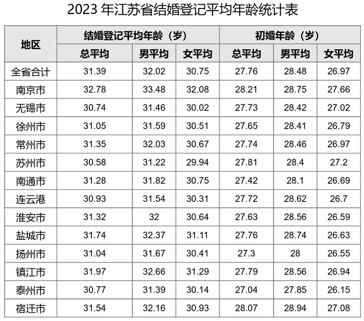 2023年全省结婚登记平均年龄为31.39岁,其中男性32.02岁、女性30.75岁。