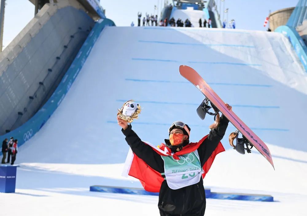2022年2月15日,苏翊鸣在北京2022年冬奥会单板滑雪男子大跳台决赛中夺得金牌