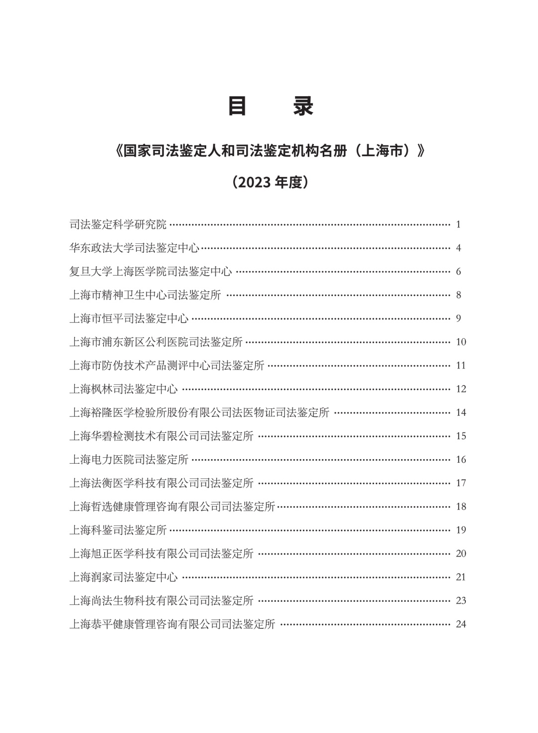 和司法鉴定机构名册(上海市)》