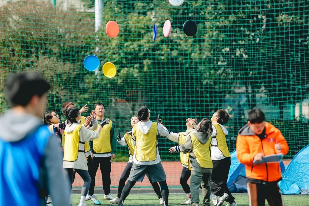 是一种综合性飞盘活动,涵盖了各种飞盘文化元素和娱乐活动,有“飞盘九宫格”“飞盘投篮”“飞盘保龄球”“飞盘掷准”等项目。